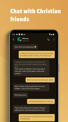 2. Engage in 1:1 Conversations and Group Fellowship: Use private messaging to connect personally or join live voice rooms for engaging discussions on faith and prayer.
