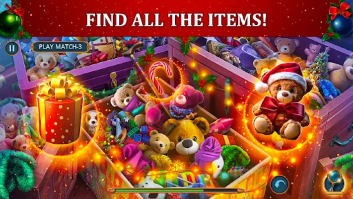 Team up with Santa Claus to solve magic puzzles & find hidden treasures in these one-of-a-kind Christmas stories. Together, you'll explore a world full of holiday wonders, complete with hidden objects Christmas & item search games designed to capture the magic of a Merry Christmas!