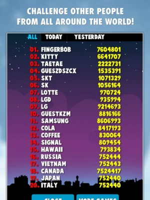 Challenge yourself in high-score competitions, aiming for the global TOP20!