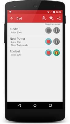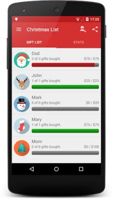 - Add/remove gifts for each person on your list
