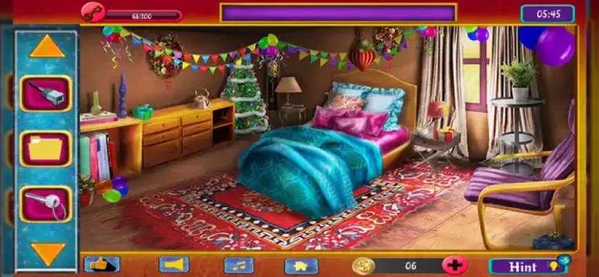 The floors and rooms are highly decorated for Christmas and New year. Find all the massive numbers of hidden objects in all Christmas celebrations and matching the objects, collect the hidden key, open the doors and locks then finally escape from the room. It will be taken into the real feel celebration in front of Santa and Bunny.