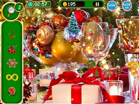 Festive: Christmas is a festive time of year. In Christmas Wilds, you will find all sorts of festive symbols hidden in the scenes, such as Santa Claus, reindeer, and Christmas trees.