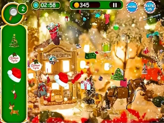 In this exciting game, you will travel to the North Pole and help Santa Claus and his elves prepare for Christmas Eve. Along the way, you will search for hidden objects in a variety of festive scenes.