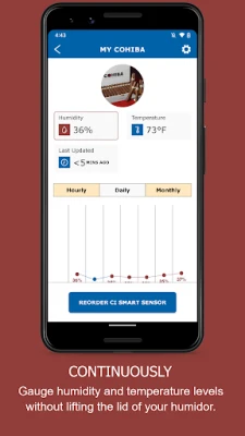Keep a watchful eye on your cigars without lifting the lid of your humidor or container. The CI Smart Sensor will continuously gauge humidity and temperature levels inside your humidor and container providing access to those vital readings. You will receive push notifications if readings are outside your customized humidity ranges or if someone dips into your container. Analyze your hourly, daily and monthly readings, then use that info to adjust for seasonal changes or newly introduced valuables. Once you’ve linked your CI Smart Sensor to your iOS device, you can rest easy knowing that your sensor will monitor your valuables using Bluetooth Low Energy technology. The CI Smart Sensor keeps watch even when you can’t.