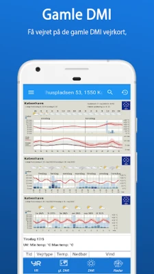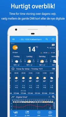 ByVejr gets its weather data from DMI and YR so you can easily compare the two weather services and create the best overview of what the weather will be like.