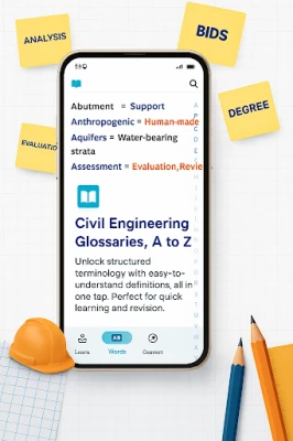 Civil Notes is a simple and powerful all-in-one learning app for civil engineering students. You can study important subjects, learn meanings and technical terms, use quick unit converters, and solve engineering calculations in one place. It is designed to make civil engineering learning easier, faster, and more organized.