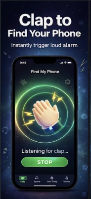 Clap Find Phone – Whistle & Alarm helps you quickly locate your phone by simply clapping your hands or whistling. When the app detects a clap or whistle, your phone will instantly ring loudly and flash the flashlight, making it easy to find even in the dark. Perfect for when your phone is lost under the bed, couch, or somewhere nearby. Clap to find the phone Whistle finder Flash alert Phone locator Alarm tools