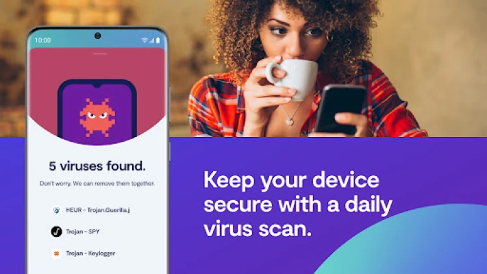 Stay virus-free with automatic malware scan for Android. We check your files and newly installed apps daily for any lurking malware.