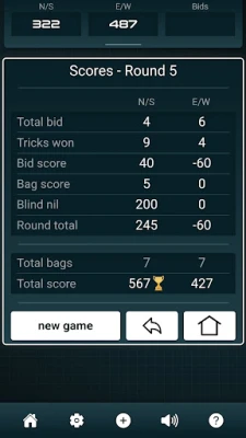 Scores are based on bids made versus tricks taken, with optional bonuses and penalties (nil and bag rules).