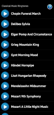 Classical Music Ringtones features classical music compositions that you can play at the tap of a button. You can use any of these popular classical music songs as a ringtone, notification, as a loud alarm or just to make some noise.