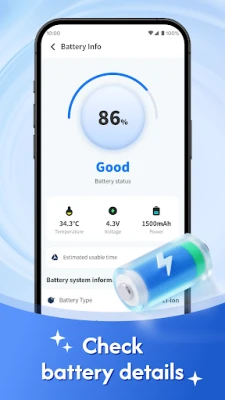 Displays remaining battery level, phone temperature, keeping you informed of your battery's real-time status.