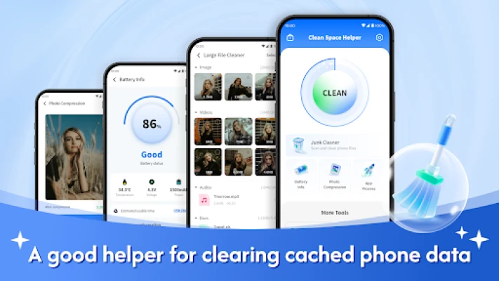 Clean Space Helper — A mobile cleaning app that integrates junk cleaning, uninstall application, battery information, and speaker cleaning. Easily remove various unnecessary files from your phone.