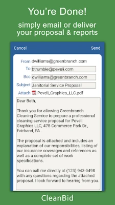 • Customized Bids! You’ll love giving building owners and property managers customized cleaning proposals including your company logo as well as a list of references and detailed job specifications.