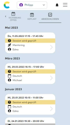 - Organisiere deine Sessions mit wenigen Klicks: Plane, verschiebe, plane um oder sage ab, ganz einfach.