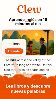 Clew es la forma más natural de aprender inglés: lees libros en inglés, escuchas voces nativas y entiendes cada vez más sin darte cuenta.