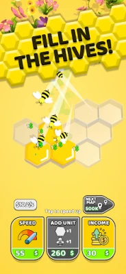 Create your own bee hive! Add bees, earn money as you make honey. Upgrade your hive by increasing your speed, income and buy new units. Lots of colorful maps are waiting for you!