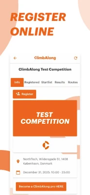 ClimbAlong is an app for climbing competitions, designed for both climbers and judges. It helps you register for competitions, find results, and submit scores - Making the competition experience easy and simple.