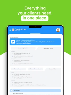 Collaborate with teams and clients, securely store sensitive documents with 256-bit SSL encryption, and manage tasks, chats, and notifications effortlessly on the go.