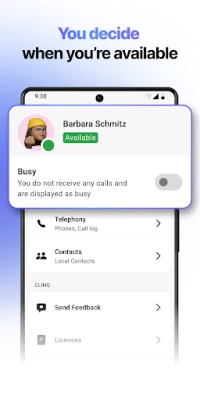 If you don’t want to be bothered, simply use the ‘Do Not Disturb’ (DND) feature in the app and decide for yourself if and when you want to be contacted . You can answer incoming calls with either the Android app or your desktop app.