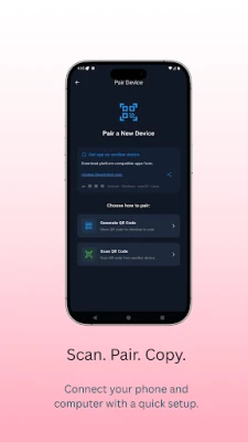 Pair with your desktop app or Chrome extension. Simple QR code scan.