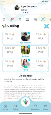 Parents will get to know immediately what their kid is doing during the day. Parents can read current day as well as previous days reports. They can see the weekly time table of their children education and fun at the center as well as the food menu. Once events are recorded from children classed, parents will instantly receive it on their app. Parents can also communicate by internal mail with administration and keep track of their statement of account