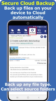 DriveHQ FileManager can manage both local and cloud files. You can easily navigate to different folders, upload or download files/folders between local and cloud. It supports regular features like Copy, Cut, Paste, Delete, View and Edit, and advanced features like backing up photos, videos, files and folders to the cloud, and sharing files with granular access control.