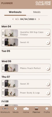 Cloud nine has been designed with you in mind. We want to make living a healthy lifestyle easy and fun for you. With 5 different workout guides to choose from and a custom meal planner, whatever your personal goals and preferences are, we’ve got you!