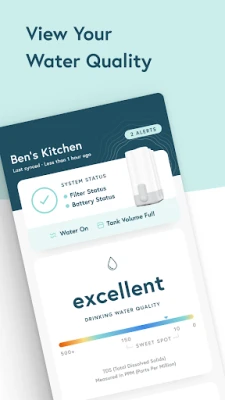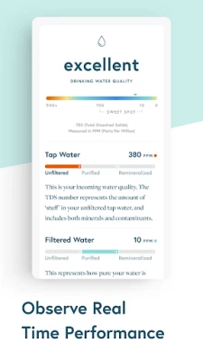 The Cloud app provides visibility into every stage of filtration. Monitor tap water quality entering the system and see how it changes as the filter works to purify and remineralize.
