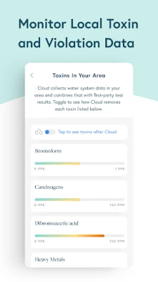 Check local toxins in your area and get notified when a water quality violation occurs. Rest assured that your Cloud filter removes 99% of toxins reported.