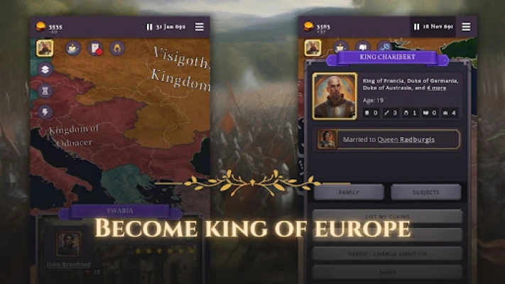 ⚔️ Enters Clovis, the ultimate grand strategy medieval war game on mobile, featuring unlimited medieval life solo gameplay, no ads game, countless scenarios, and hours of offline fun. It's the perfect mix between offline war strategy and roleplaying narrative gameplay! The medieval simulator game of your dreams!