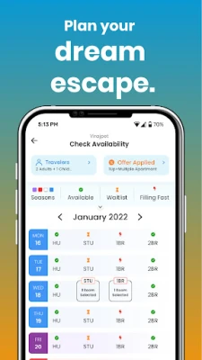 5.The app facilitates easy navigation so planning a holiday is simple and quick. First, choose the dates of your holiday from the in-app calendar and mark your dates.