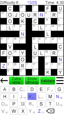 4) Selecting a square in the grid will highlight all places the same letter is used in that grid (i.e. has the same number to decipher). This is really handy and of course not possible when doing codewords in a magazine