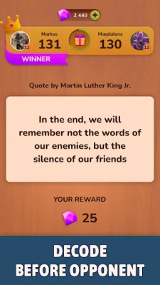 Decode hidden messages, outsmart your opponent, and climb the leaderboards in thrilling real-time matches. Each duel is a test of your wit, logic, and word mastery. Can you reveal the secret phrase before your rival does?