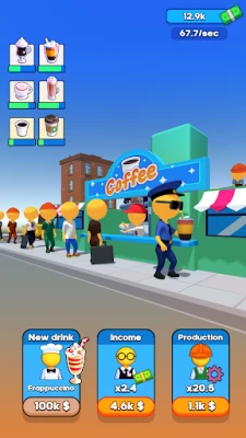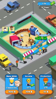 Open a small business and develop it. Upgrade your equipment and improve the skills of your workers to make better, tastier, and, moreover, more expensive drinks. Buy unique beverages like cappuccino, americano, Irish coffee, or even frappuccino! Upgrade your income to boost your earnings. Speed up the process by taping on the factory, so you will be able to produce and, of course, sell more coffee and get more money. Build your coffee empire now!