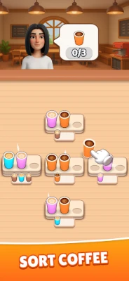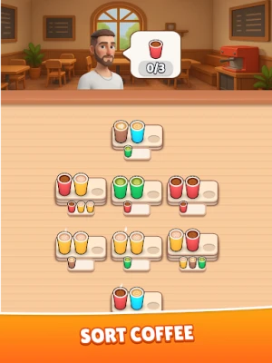 Your task is simple but challenging: tap the plates to move the coffee cups. When you match three cups of the same color, they’re packed and ready to go! Watch the orders at the top of the screen—keep sorting until every customer is happy and the board is completely clear.
