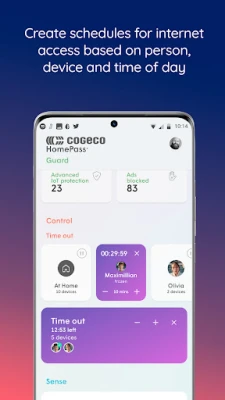 As people and devices come and go in your house, Cogeco lets you see which devices are accessing the Internet and how much they’re uploading or downloading. You can block and unblock specific devices from accessing the Internet.