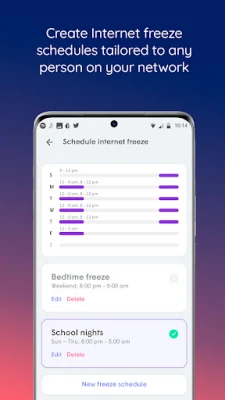 - Pause the Internet connection to any device at any time. Configure customized Internet Freeze Schedules to limit access to approved time periods.