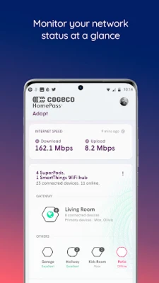 Plug in your pods and let the system go to work. Cogeco recognizes all of your devices, identifies the flow of traffic, and starts to optimize your home network. The smartphone app helps you manage the setup with a few quick taps.