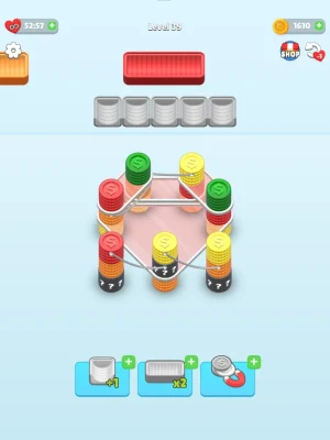 Take control of the stacked coin piles and strategically place them into the matching colored boxes. With each precise stack, watch as your collection grows and your skills are put to the test!