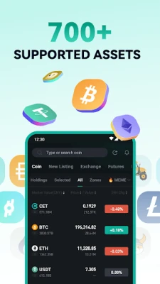 - Bitcoin (BTC), Ethereum (ETH), Solana (SOL), PEPE, WorldCoin (WLD), CoinEx Token (CET), CyberConnect (CYBER), Dogecoin (DOGE), Polkadot (DOT), Maker (MKR), Tether (USDT), Avalanche (AVAX), Baby Doge Coin (BABYDOGE), Polygon (MATIC), Cardano (ADA), Fantom (FTM), Litecoin (LTC), Chainlink (LINK), Ethereum Classic (ETC), Stellar (XLM), Theta Network (Theta), Uniswap (UNI), Tron (TRX), Algorand (ALGO), Filecoin (FIL), Cosmos (ATOM), Monero (XMR), EOS, AAVE, USDC, Shiba Inu (SHIB), NEO, Tezos (XTZ), Bitcoin SV (BSV), XRP, Uniswap (UNI), Decentraland (MANA), SAND, MIOTA (IOTA), Axie Infinity (AXS), Harmony (ONE), Near Protocol (NEAR), ENJ, Stacks (STX), Basic Attention Token (BAT), Kaspa (KAS), Zano (ZANO), HONEY, MOBILE, TURT, JTO, SILLY and many other cryptocurrencies.