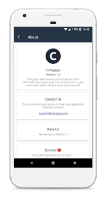 We are trying to make Coingapp better. Please do not hesitate to contact us for any issues or suggestions at