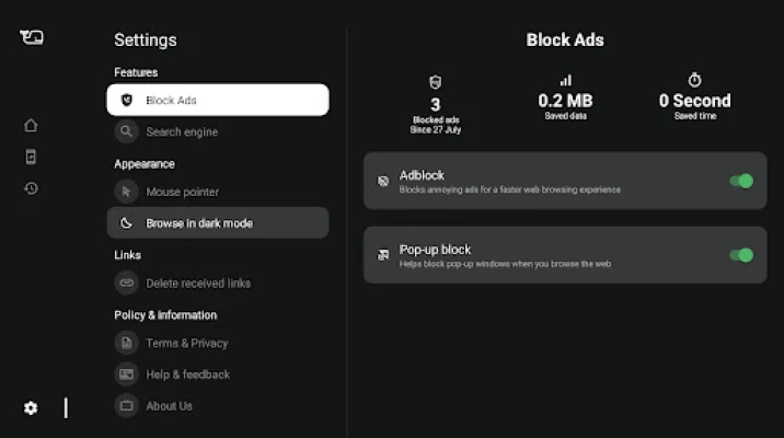 - Adblock: Automatically blocks annoying ads and pop-ups so you can enjoy videos, matches, and content without interruptions.