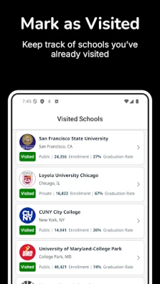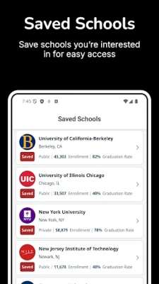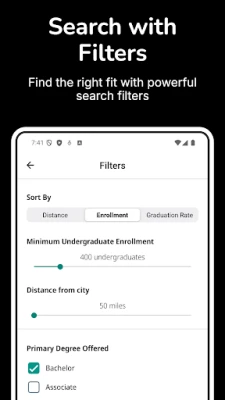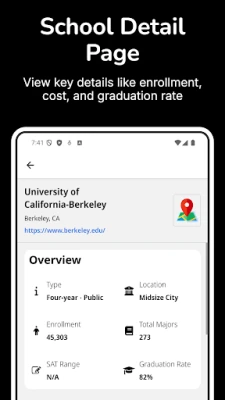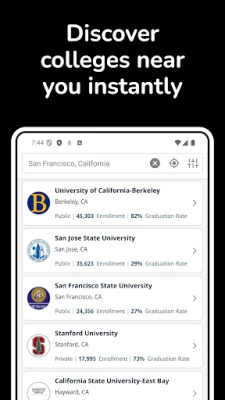 Features: * Search for colleges by city or use your current location * Browse a map or list of nearby institutions * View detailed information for each college * Save and track schools you’re interested in * Filter by distance, type, and size