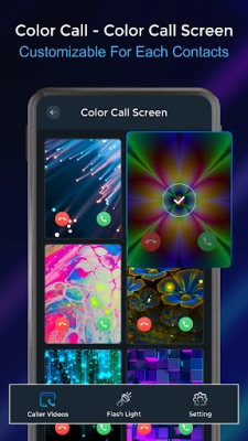 Color Call - Color Call Screen, Color Phone Flash is a wonderful screen flash for calls which helps you create your special call phone screen when you have an incoming call. Many beautiful and unique color call themes for you and you can make your phone call flash be more colorful . It provides a variety of beauty color phone call personalized themes .