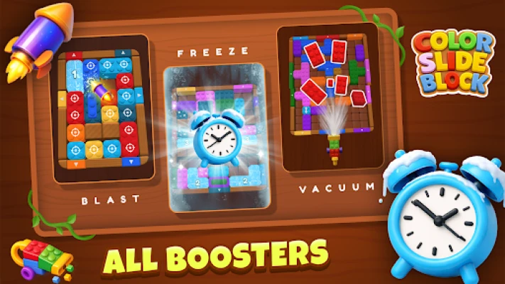 Download Color Slide Block: Jam Puzzle now and enjoy a colorful puzzle experience powered by Freeze Time, Vacuum, and Magnet boosters.