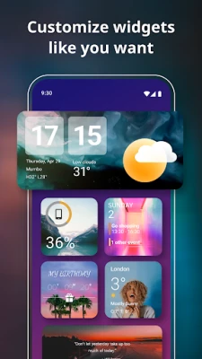 You can add widgets to decorate your phone screen and put information at your fingertips - weather conditions, battery level, Bluetooth status or upcoming calendar events. A variety of widget sizes are available.