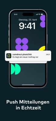 Ihre Transaktion wird automatisch in die comdirect photoTAN App übertragen und auf Ihrem Smartphone erscheint eine Benachrichtigung. Bei Tippen auf die Nachricht öffnet sich die photoTAN App. Prüfen Sie die Transaktion und geben Sie die TAN frei, indem Sie den Pfeil von links nach rechts schieben.