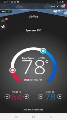 • Away Sync™ uses the location on your mobile phone to detect when the house is empty and automatically change the temperature to a more energy-efficient setting. When a family member is on the way home it automatically returns the temperature to its regular setting