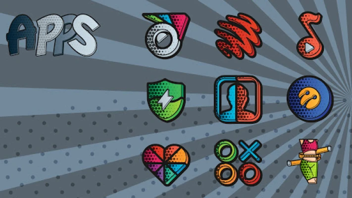 Embark on an extraordinary Android journey with the sensational Comics icon theme Pack. Immerse yourself in a world of cutting-edge design, boasting a captivating dark halftone effect and a vibrant array of pastel colours. Elevate your device's aesthetic to new heights with this ground-breaking. Best icons for android.