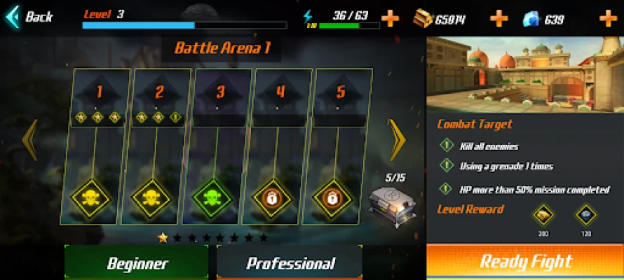 • Real FPS commando-Army shooting 3D game has variety of missions to execute, choose many of the advanced weapons to get commando shooting targets. Mission of the Army Commando Shooting game is that you have to complete every level to and mission of every levels assigned to you, then you will be progressed to next battle shooting arena. Every chapter contains 5 missions to be executed. Each mission has 3 stars to be achieved. If you get all stars in a chapter you will be awarded complementary gun and a special mission. Special Soldier FPS Commando Shooting game has unlimited guns to choose from, with special weapons for special missions as well. All is you need to achieve stars to get that special weapon.